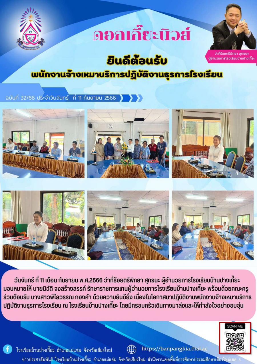 ยินดีต้อนรับ พนักงานจ้างเหมาบริการปฏิบัติงานธุรการโรงเรียน