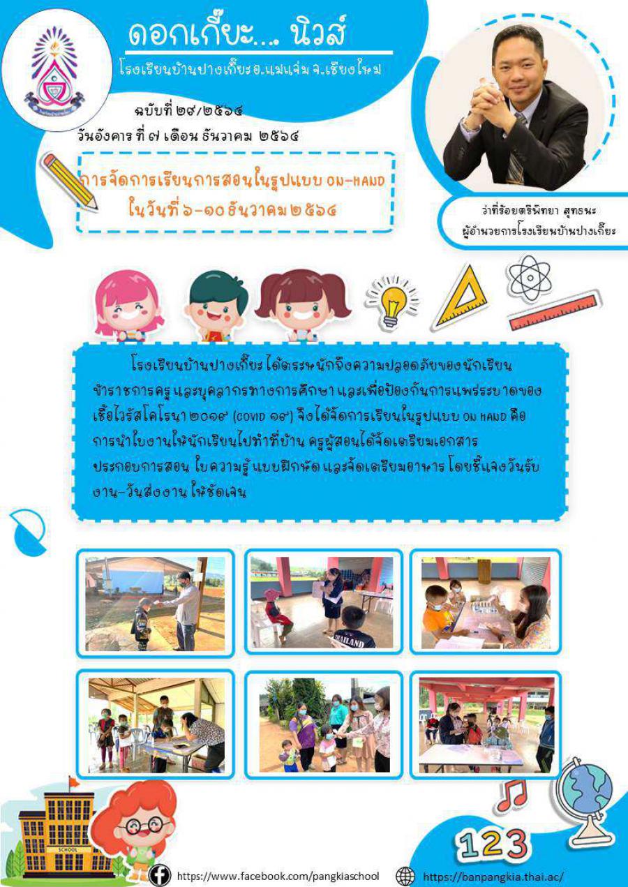 วันที่ ๗ ธันวาคม ๒๕๖๔ โรงเรียนบ้านปางเกี๊ยะ ได้ตระหนักถึงความปลอดภัยของนักเรียน ข้าราชการครู และบุคลากรทางการศึกษา และเพื่อป้องกันการแพร่ระบาดของเชื้อไวรัสโคโรนา ๒๐๑๙ (COVID๑๙) จึงได้จัดการเรียนในรูป