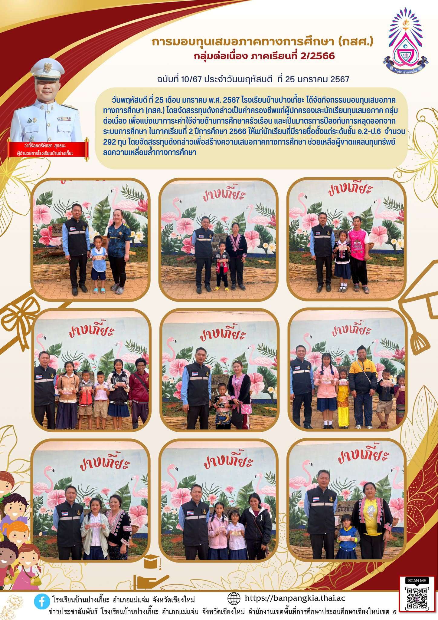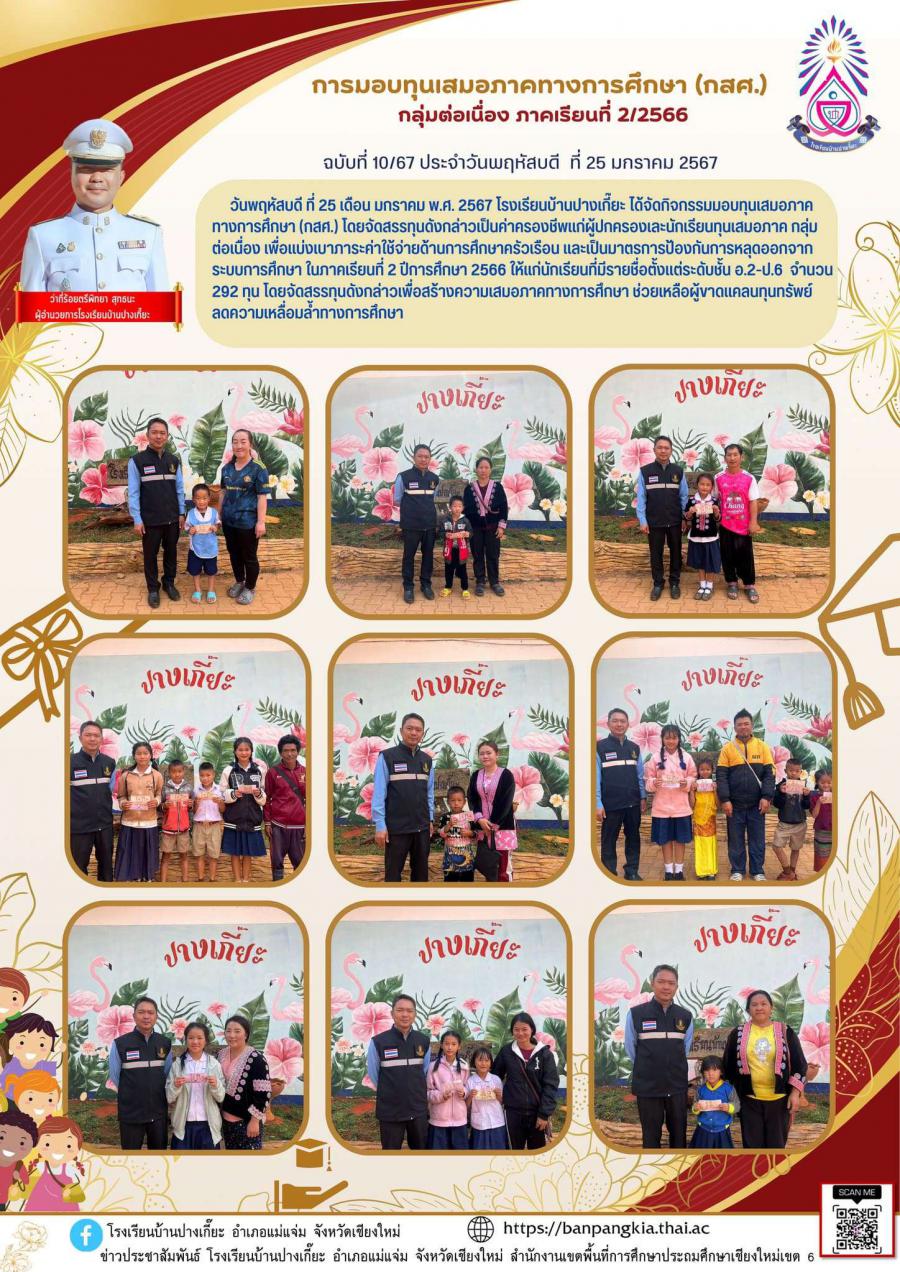การมอบทุนเสมอภาคทางการศึกษา (กสศ.) กลุ่มต่อเนื่อง ภาคเรียนที่ 2/2566