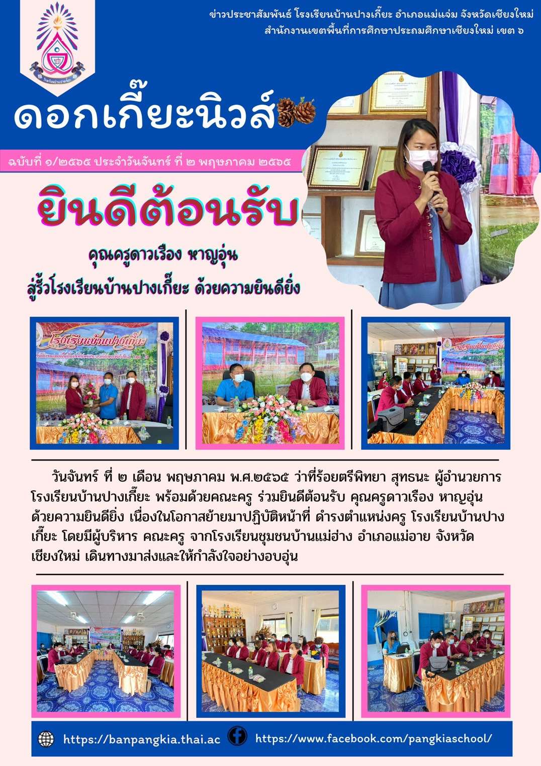 ยินดีต้อนรับ คุณครูดาวเรือง หาญอุ่น ด้วยความยินดียิ่ง เนื่องในโอกาสย้ายมาปฏิบัติหน้าที่ ดำรงตำแหน่งครู โรงเรียนบ้านปางเกี๊ยะ