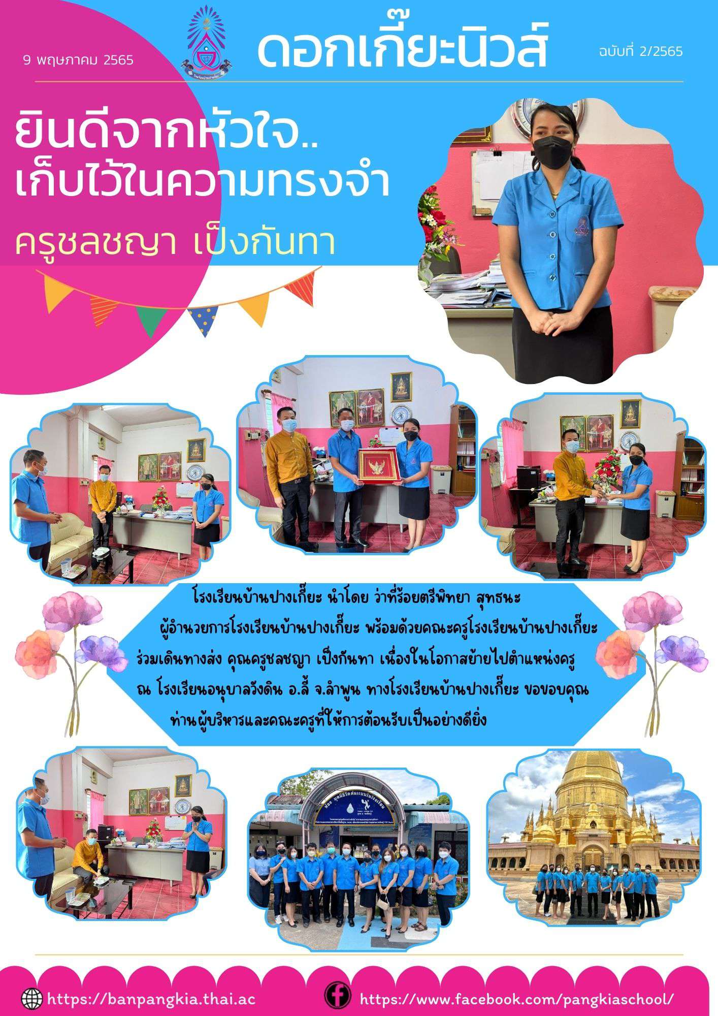 ขอแสดงความยินดีกับคุณครูชลชญา เป็งกันทา เนื่องในโอกาสย้ายไปตำแหน่งครู ณ โรงเรียนอนุบาลวังดิน อ.ลี้ จ.ลำพูน