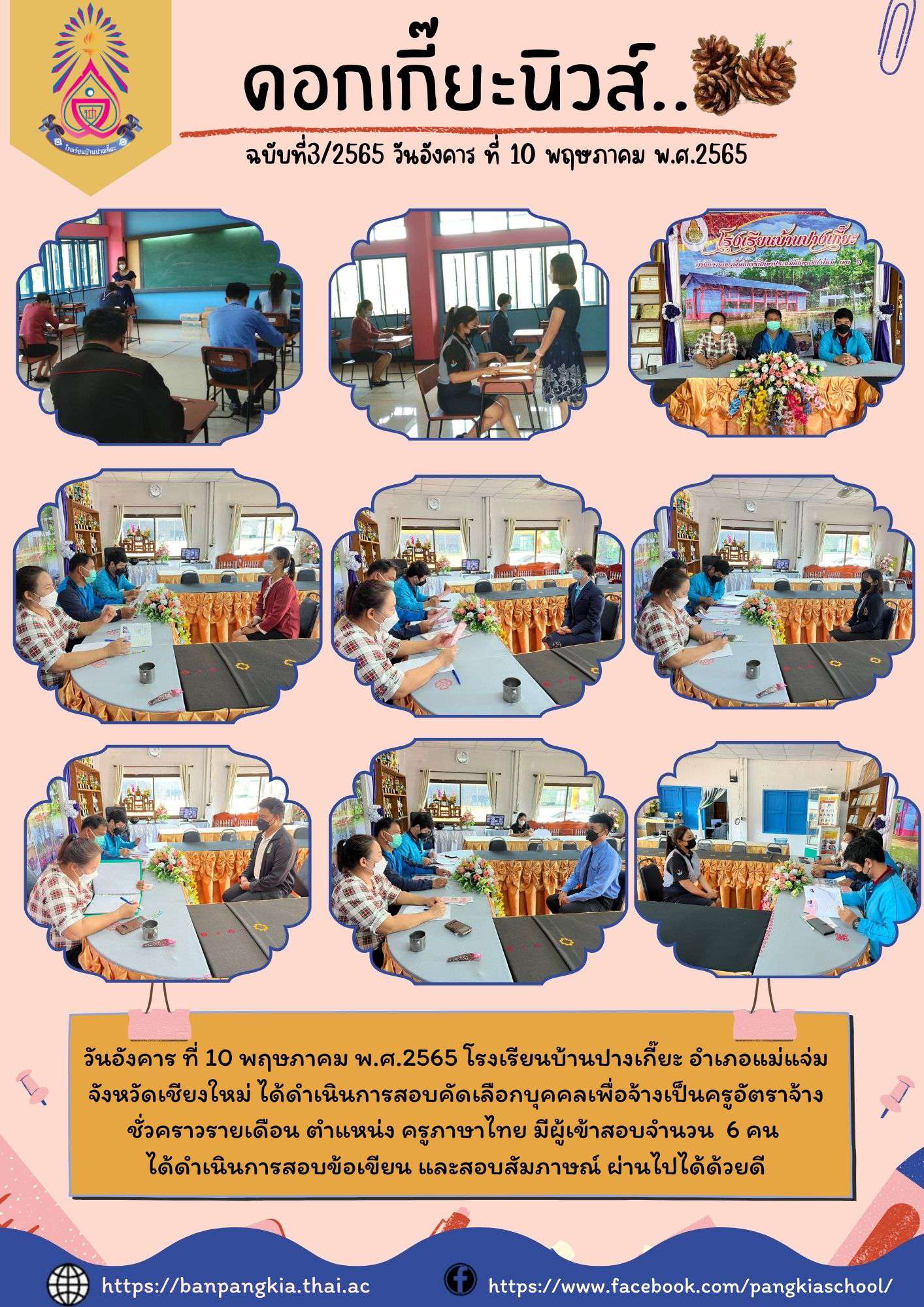 โรงเรียนบ้านปางเกี๊ยะ ได้ดำเนินการสอบคัดเลือกบุคคลเพื่อจ้างเป็นครูอัตราจ้างชั่วคราวรายเดือน ตำแหน่ง ครูภาษาไทย
