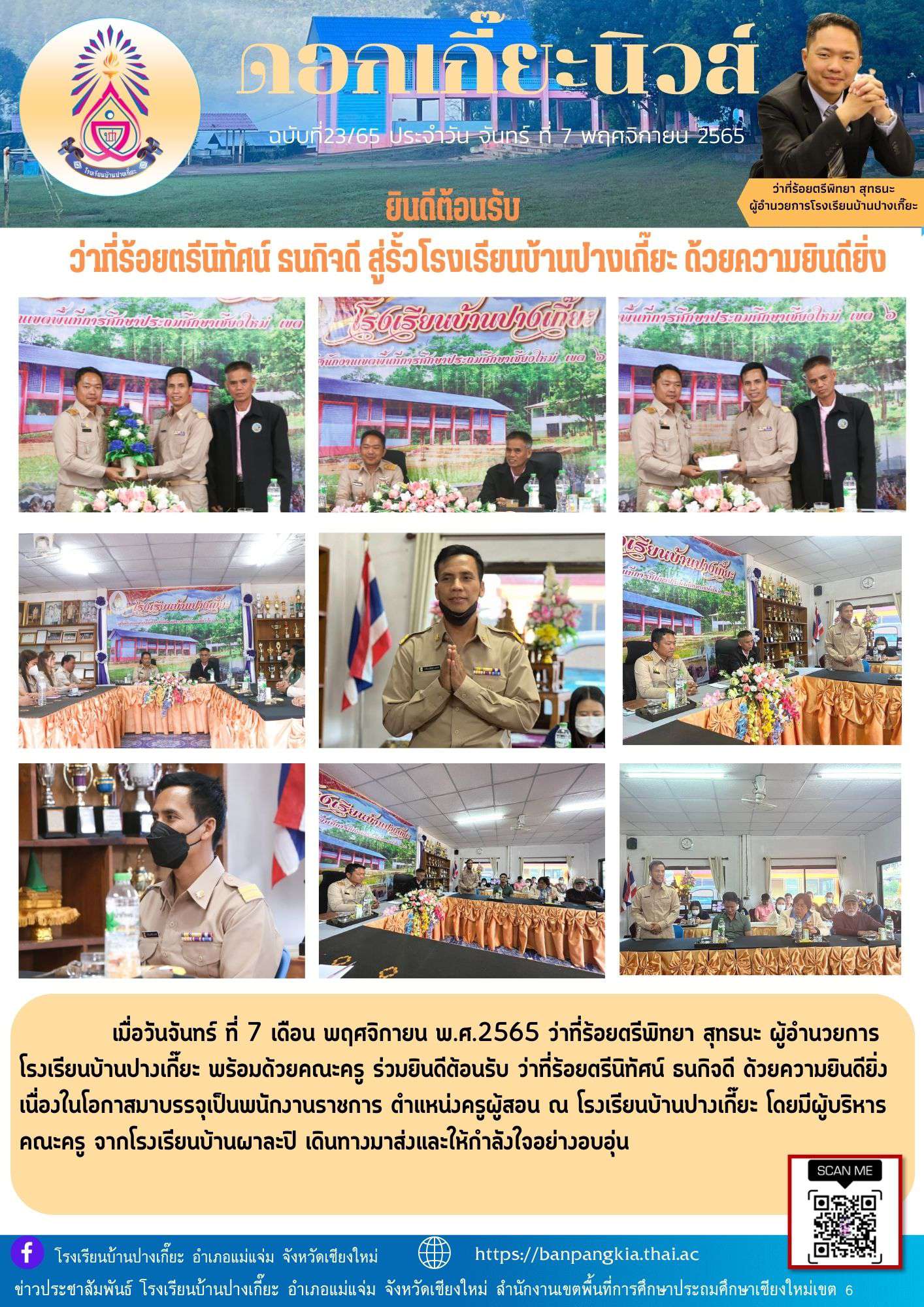 ยินดีต้อนรับ ว่าที่ร้อยตรีนิทัศน์ ธนกิจดี ด้วยความยินดียิ่ง เนื่องในโอกาสมาบรรจุเป็นพนักงานราชการ ตำแหน่งครูผู้สอน ณ โรงเรียนบ้านปางเกี๊ยะ