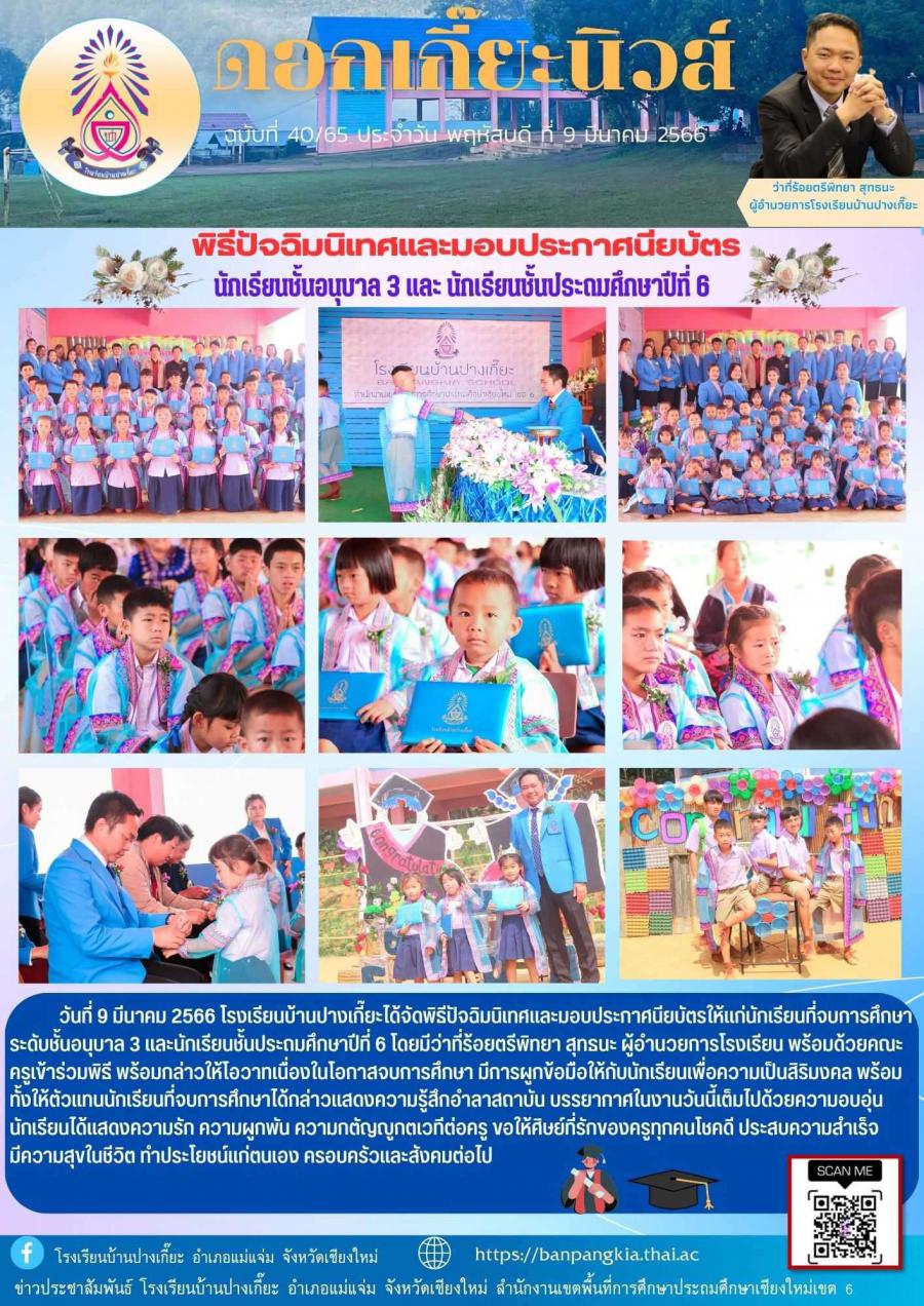 พิธีปัจฉิมนิเทศและมอบประกาศนียบัตรให้เเก่นักเรียนที่จบการศึกษาระดับชั้นอนุบาล 3 และนักเรียนชั้นประถมศึกษาปีที่ 6