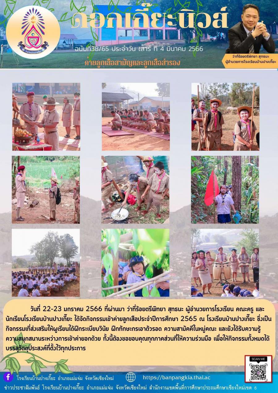 กิจกรรมDay Camp ลูกเสือสามัญและลูกเสือสำรอง ประจำปีการศึกษา 2565 ณ โรงเรียนบ้านปางเกี๊ยะ