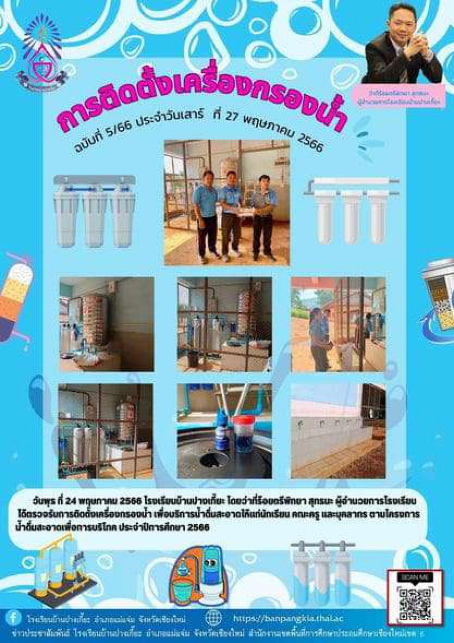 ตรวจรับการติดตั้งเครื่องกรองน้ำ เพื่อบริการน้ำดื่มสะอาดให้แก่นักเรียน คณะครู และบุคลากร