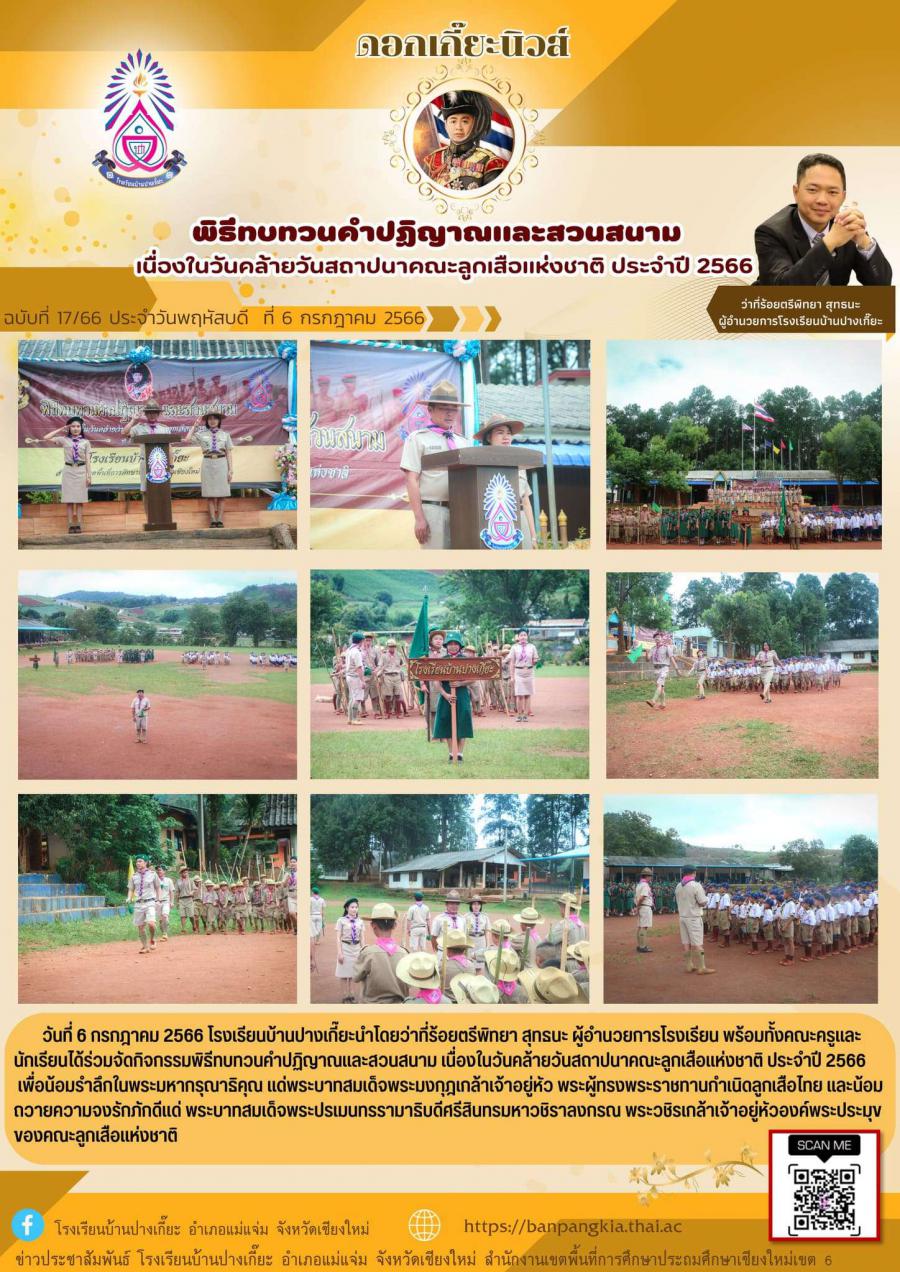 พิธีทบทวนคำปฏิญาณและสวนสนาม เนื่องในวันคล้ายวันสถาปนาคณะลูกเสือแห่งชาติ ประจำปี 2566