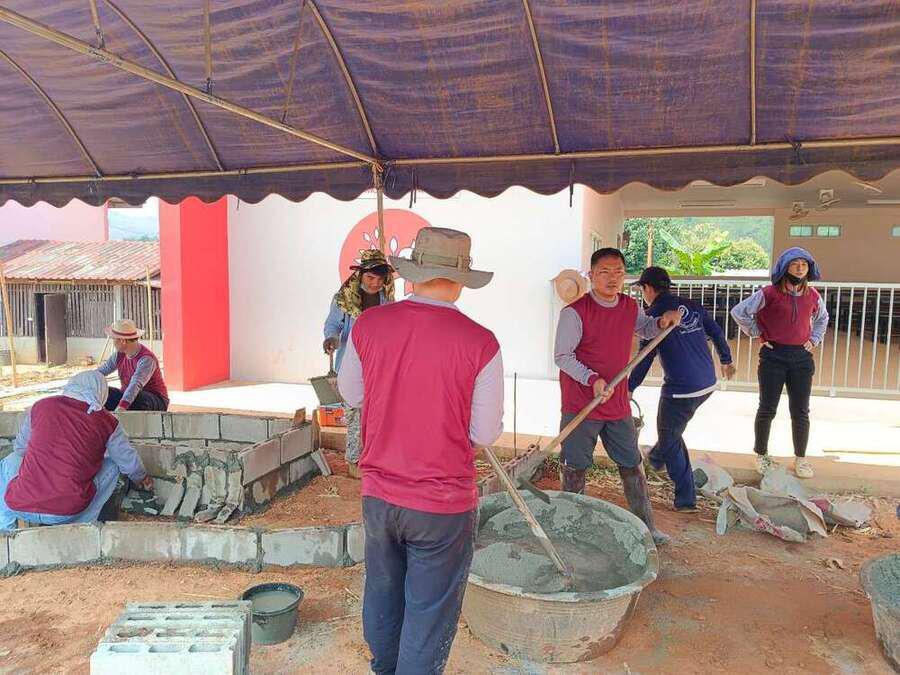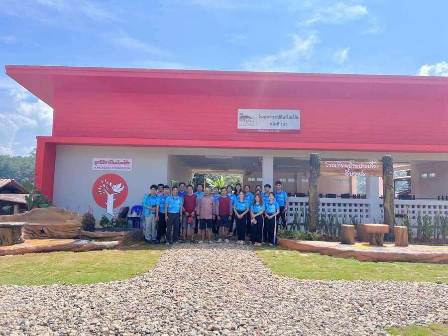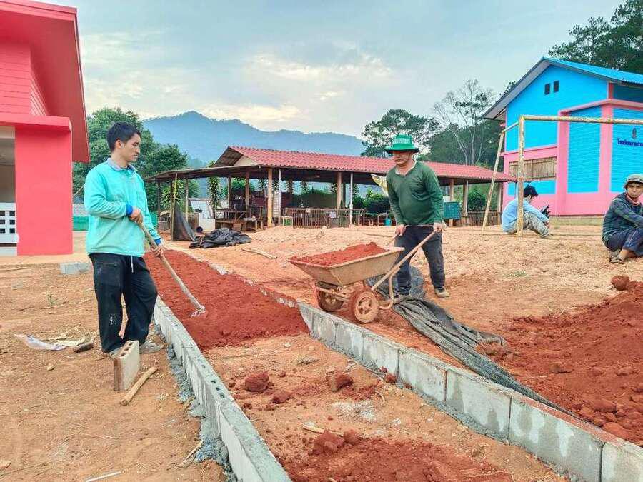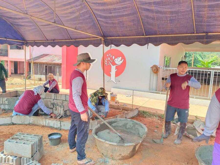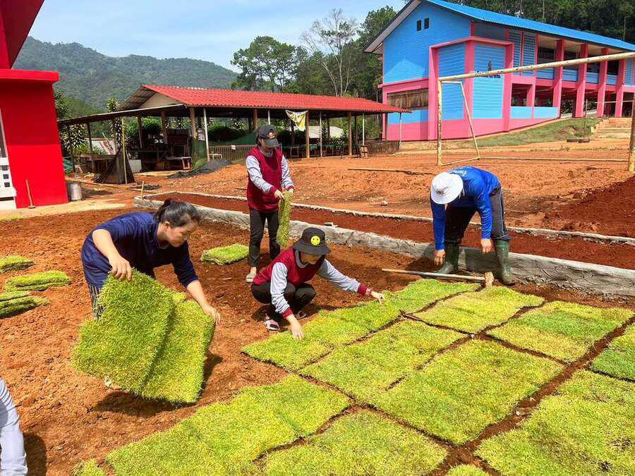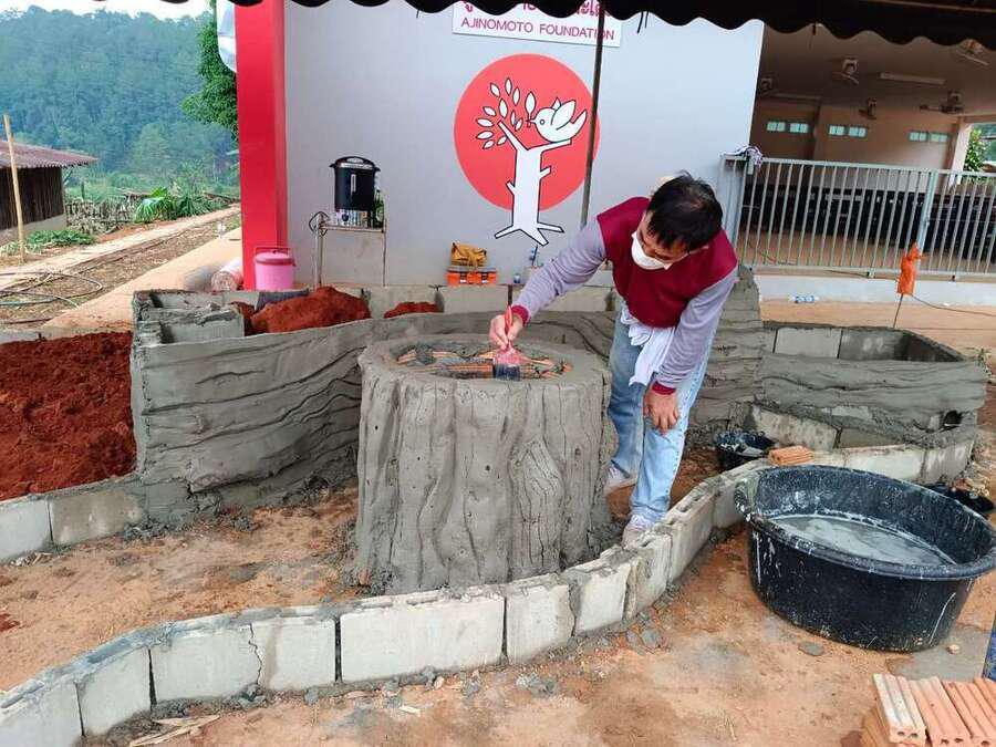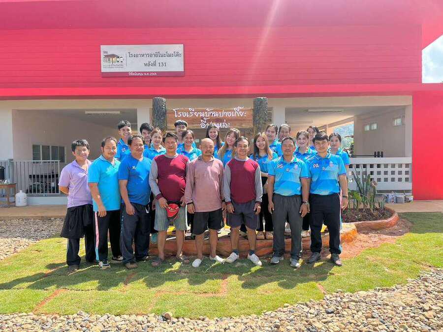 การปรับปรุงภูมิทัศน์ บริเวณรอบโรงอาหารให้สวยงาม เพื่อเตรียมพร้อมในการเปิดอาคารโรงอาหารอายิโนะโมะโต๊ะ