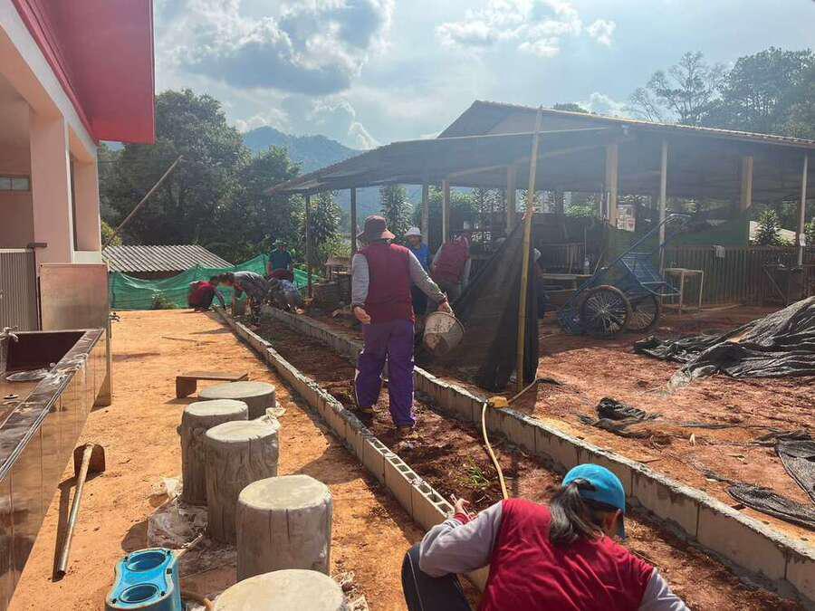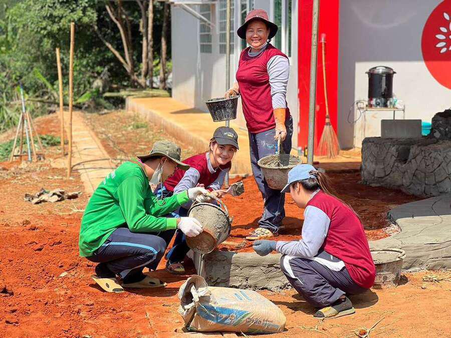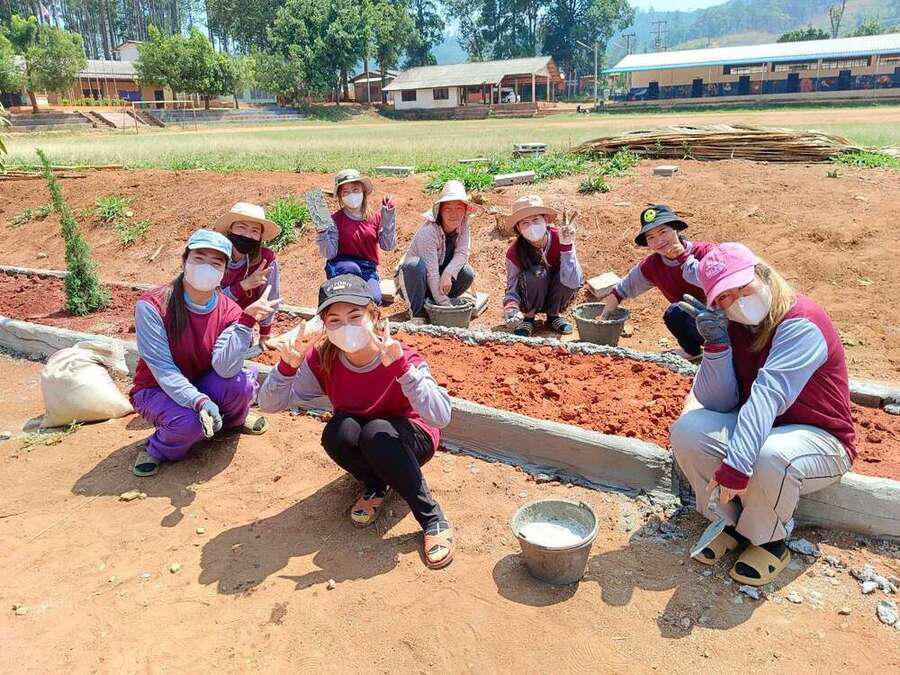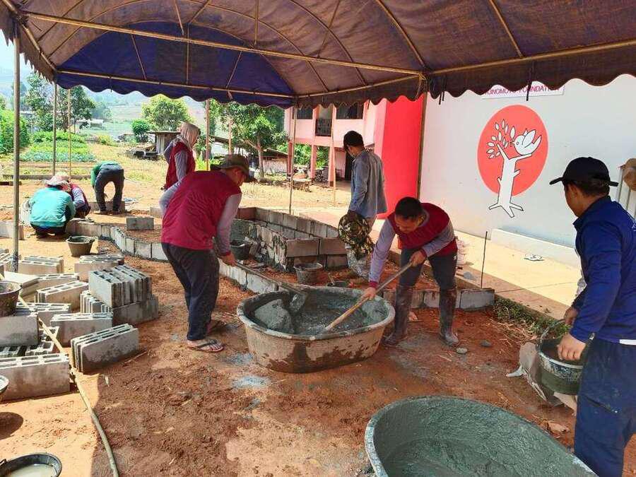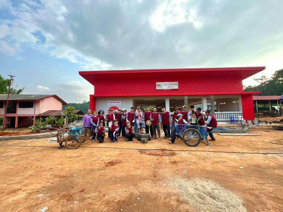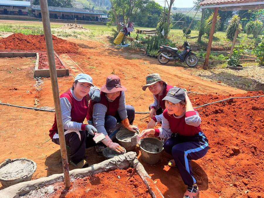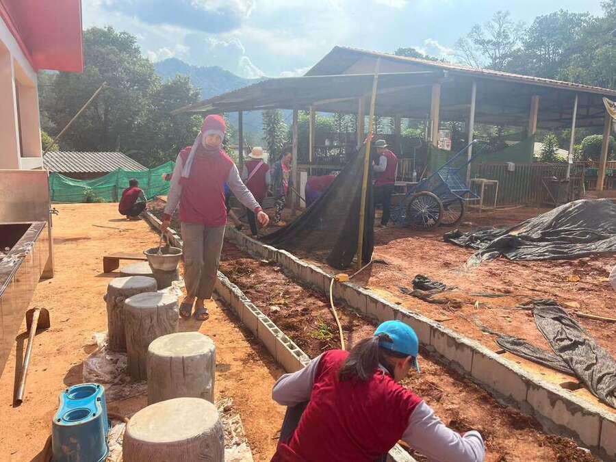 การปรับปรุงภูมิทัศน์ บริเวณรอบโรงอาหารให้สวยงาม เพื่อเตรียมพร้อมในการเปิดอาคารโรงอาหารอายิโนะโมะโต๊ะ