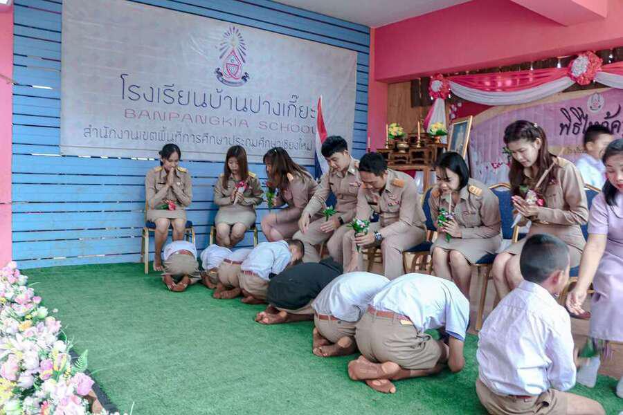 วันพฤหัสบดี ที่ 15 มิถุนายน 2566 โรงเรียนบ้านปางเกี๊ยะ นำโดย ว่าที่ร้อยตรีพิทยา สุทธนะผู้อำนวยการโรงเรียนพร้อมด้วยคณะครู ได้ดำเนินการจัดกิจกรรมวันไหว้ครู ประจำปีการศึกษา 2566 เพื่อให้นักเรียนได้แสดงความกตัญญูกตเวที และรำลึกถึงพระคุณครู ผู้ประสิทธิ์ประสาทวิชาความรู้ รวมทั้งเป็นการปลูกฝังคุณธรรม จริยธรรม ให้แก่นักเรียน บรรยากาศเป็นไปด้วยความอบอุ่น S:0