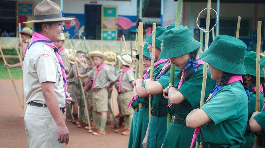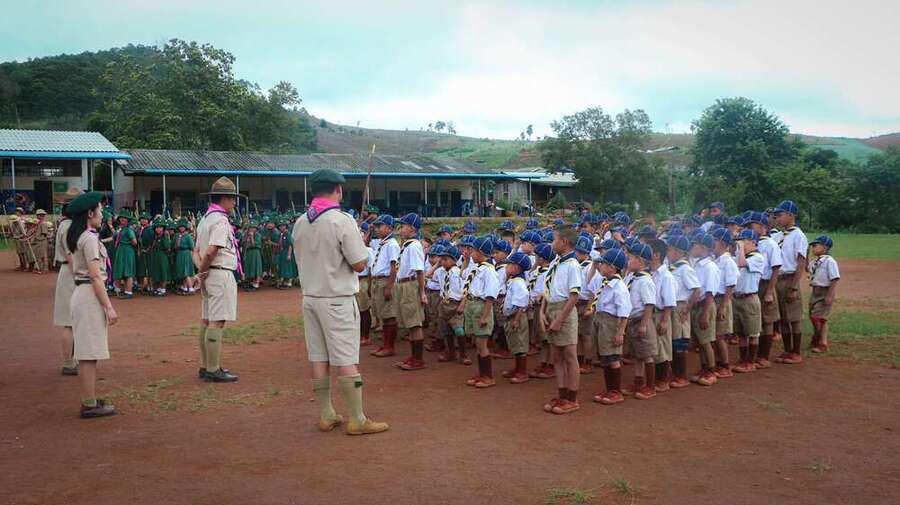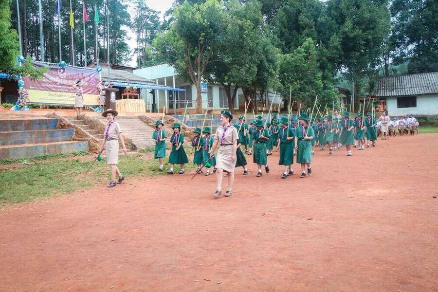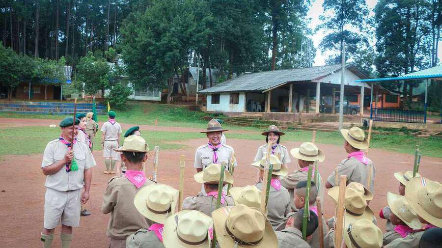 พิธีทบทวนคำปฏิญาณและสวนสนาม เนื่องในวันคล้ายวันสถาปนาคณะลูกเสือแห่งชาติ ประจำปี 2566