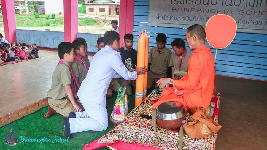 วันพฤหัสบดี ที่ ๒๗ เดือน กรกฎาคม พ.ศ.๒๕๖๖ โรงเรียนบ้านปางเกี๊ยะ นำโดยว่าที่ร้อยตรีพิทยา สุทธนะ ผู้อำนวยการโรงเรียนบ้านปางเกี๊ยะ พร้อมทั้งคณะครู บุคลากรในโรงเรียน และนักเรียน ได้ร่วมกันทำบุญตักบาตร พร้อมกับถวายเทียนพรรษาเนื่องในวันอาสาฬหบูชาและวันเข้าพรรษา เพื่อถวายเป็นพุทธบูชา สืบทอดพระพุทธศาสนาให้ยั่งยืนถาวร และเพื่อความเป็นสิริมงคลแก่ชีวิตของตนเองและครอบครัว ทั้งยังอนุรักษ์ การส่งเสริม สืบทอดประเพณี วัฒนธรรมอันดีงามทางพระพุทธศาสนาสืบไป S:0